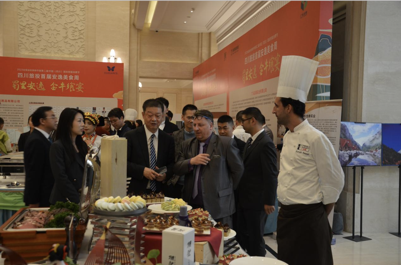 10月31日,省尊龍凱時集團在金牛賓館舉辦“蜀里安逸·金牛饗宴”首屆安逸美食周活動,創(chuàng)新消費場景,以美食帶動旅游,以美食促進消費。集團黨委書記、董事長任丁致辭,并與集團黨委副書記、副董事長、總經(jīng)理周曉陽,商務廳二級巡視員鄭鵬斌,文旅廳二級巡視員王燕林等嘉賓共同啟動美食周開幕儀式。