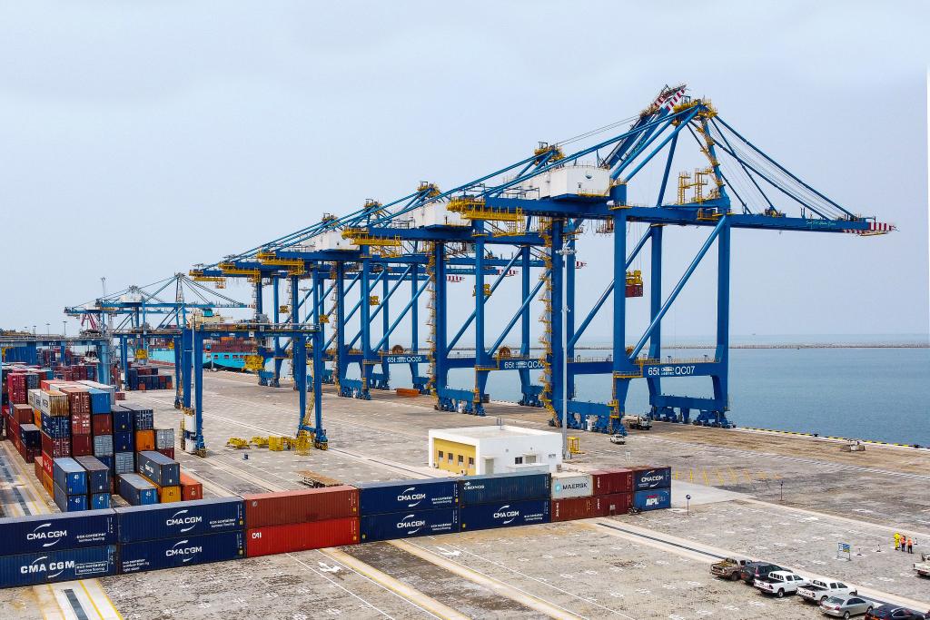 這是2月21日在喀麥隆南部大區(qū)的克里比拍攝的喀麥隆克里比深水港二期照片(無(wú)人機(jī)照片)。由中國(guó)港灣工程有限責(zé)任公司(中國(guó)港灣)承建的喀麥隆克里比深水港二期工程交工儀式21日在克里比深水港碼頭舉行。新華社發(fā)(科普索攝)